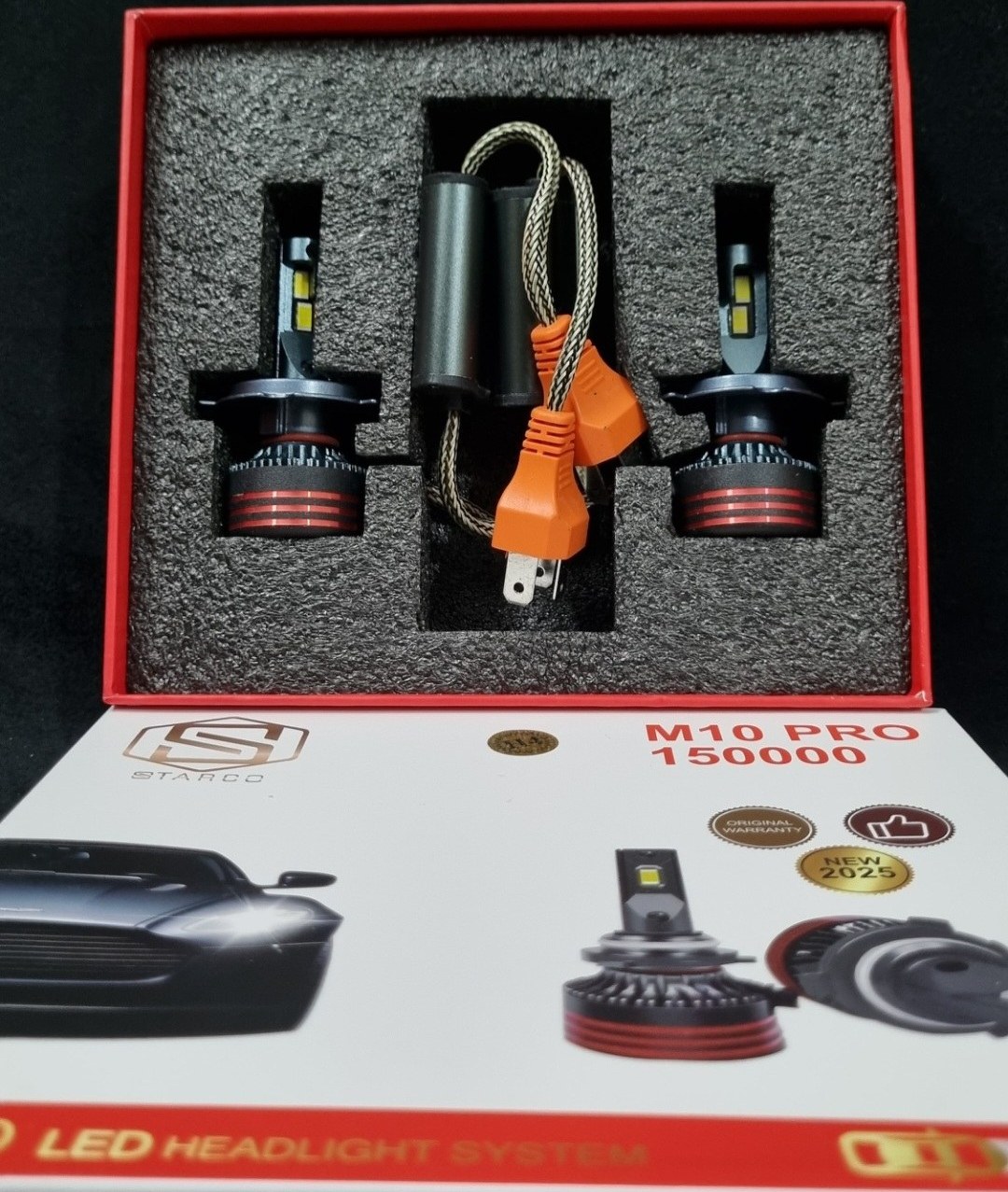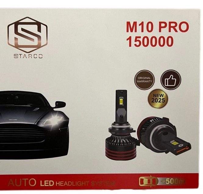 هدلایت M10، شامل مجموعه دو عددی از یک هدلایت قدرتمند با نور سفید است که از لامپ های LED 9006 بهره می برد. محصولی بسیار کاربردی، مقاوم و بادوام که تمامی نیاز های شما را به هنگام رانندگی برطرف می کند و به عنوان جایگزینی منحصر به فرد برای روشنایی فابریک خودرو ، با همان میزان مصرف برق، مقدار روشنایی را تا ۱۸۵۰۰ لومن می رساند که ۶ برابر قدرت لامپ فابریک می باشد و به این مساله هم توجه داشته باشیم که این میزان از نور باعث تولید گرمای بیشتر و عمر کمتر لامپ نخواهد بود.